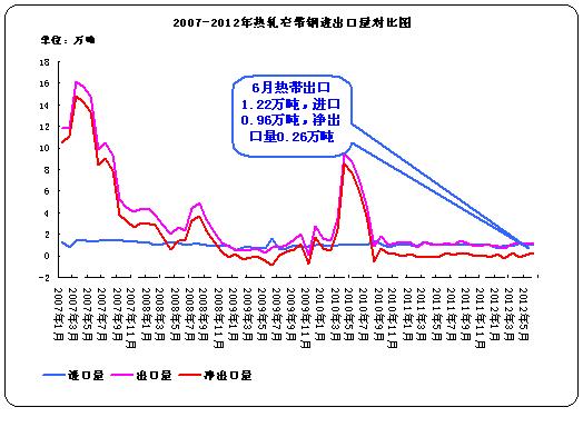 据中华商务网监测数据显示, 2012年6月份进口热轧窄带钢0.96万吨,出口1.22万吨,净进口0.26万吨。6月份新增资源量433.04万吨。
