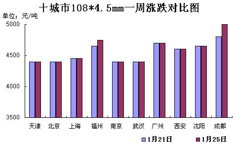 西南地区:无缝管市场价格大幅走高,其中成都108*4.5市场价格5000元/吨。因攀成钢无缝管出厂价格上调250-350元/吨,本地市场价格小幅跟涨,但市场受买涨不买跌的影响不大,成交仍然一般,短期内无缝管市场价格存在进一步上行的可能。