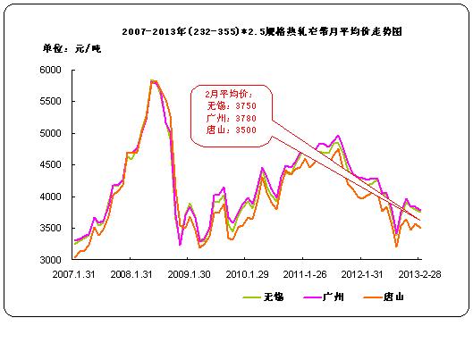 | 2013年2月 | 3750 | 3580 | 3500 | 3750 |