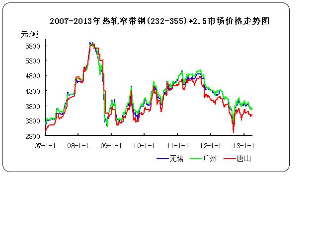 华北市场:本周北方地区带钢主要表现下跌之势,跌幅普遍在30元左右。其中唐山地区145规格小窄带较上周回落40-50元左右,现报3460-3480元/吨,不带票价格3310元/吨,跌50元;355规格带钢与上周五相比涨幅70元左右,现出厂价3500元/吨;天津岐丰钢厂出厂价现挂牌3600-3670元/吨,较上周拉涨20元,因本地区货源偏多,商家想增加出货量以降低库存。邯郸地区中宽带钢纵横基价现报3600元/吨,较上周回落30元,因市场库存偏大商家以低价来消化库存。
