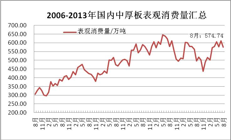 9月中厚板表观消费量564.49万吨,环比上月增加7.89万吨。