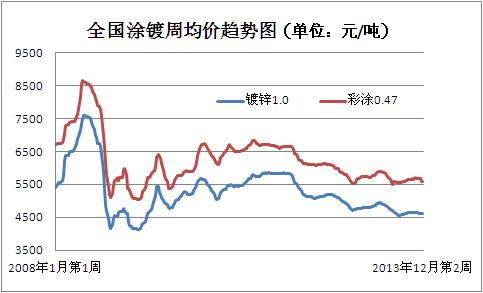 11月国内涂镀市场延续10月份盘整走势,价格上涨缺乏动力,而大幅下调报价促成交的意愿又小。镀锌方面,彩基板价格呈弱势盘整态势,降幅仅10-20元/吨,因下游需求力度萎缩,市场竞争压力偏大,目前同规格产品厂家之间价差愈来愈小。厚规格镀锌报价虽稳,但成交仍异常清淡。上海市场本钢、马钢等资源紧缺,商家出货无让利空间。彩涂方面,受天气影响,彩涂市场呈南强北弱之态势,北方低价彩涂资源不断涌现,且成交十分困难。华东、华南报价尚稳,多数厂家表示,需求淡季下下调报价也难改成交清淡的局面,因此力挺报价,另据了解目前外贸订单略好于内销。