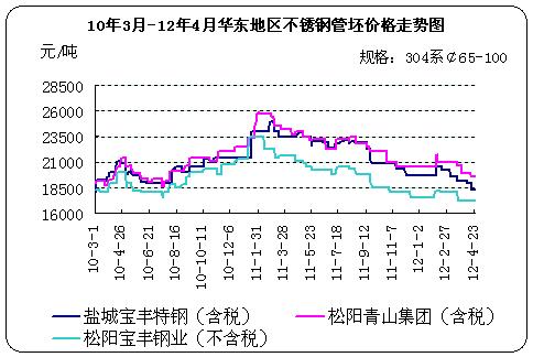 随着不锈钢管坯价格开始下滑,不锈钢无缝管市场成交则更加惨淡,特别是竞争比较激烈的300系常规工业管,据业内人士透露,市场不少商家因为资金压力低价套现,今年行情难以好转,对后市看空,商家积极走货为主,不锈钢无缝管价格下调幅度较大,目前价格比较混乱,低价资源在市场占主流地位。而200系市场变化不是很大,主要是因为受镍价波动较小,商家出货也较为平稳,市场比较有信心,但国际国内整体行情并不是很好,价格上扬较为困难,预计5月不锈钢无缝管市场行情好转很渺茫。