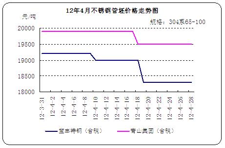 12年4月,清明节过后,不锈钢无缝管报价平稳。虽然天气转暖,但是目前市场成交仍不见明朗。随着期镍上行,不锈钢无缝管价格却继续回跌。各商家报价不一,总体悲观情绪围绕市场。需求不见好转,镍价反弹对于市场没有效果,拉不动价格上涨。商家观望情绪较浓。月中,原材料不锈钢管坯价格受镍价新低影响下跌,不锈钢无缝管市场低迷。商家身心俱疲,市场竞争激烈,对后市预期显得信心不足。各大商家表示无奈,不锈钢无缝管市场“微利时代”进入漫长阶段。转眼就到月末,行情持续不振,不锈钢无缝管市场价格仍在下调,目前多数商家压力较大,行情比08年还要艰难,生意不好做,对后市持悲观心理。