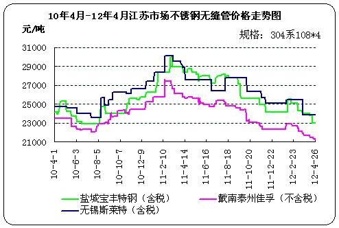 转眼间四月已过。不锈钢无缝管市场价格继续跌幅走势,镍价震荡走低,市场行情依旧不见好转,行情回暖需要等待更长时间。
