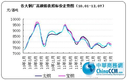 七月三大钢厂高碳铬铁招标价
