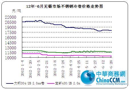 08年-12年6月无锡市场不锈钢冷轧价格对比走势图