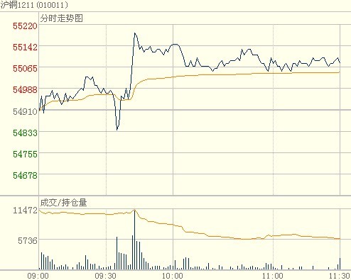 CPI优于市场预期,通胀压力缓解。这给给政府进一步调控预留了较大空间,对大宗商品的利多迅速反应在了今日铜价走势上,如图所示: