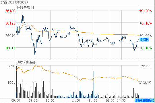 反观铜价表现颇为淡定,保持昨天的弱势特征,继续窄幅震荡下行。如图所示: