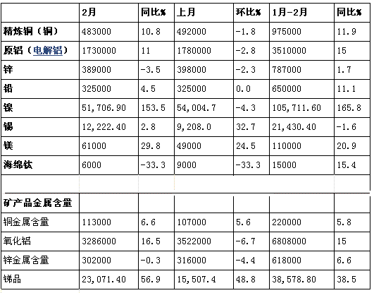 (关键字:2月铜产量 铝产量 铅 锌 锡)