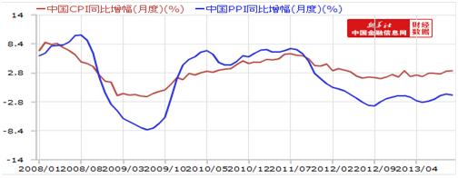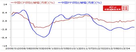 9月PPI同比下降1.3%,降幅收窄0.3个百分点。2013年10月份全国工业生产者出厂价格同比下降1.5%,11月PPI同比下降1.4% 。这表明大宗工业品出厂价格没有走出低位震荡的态势。